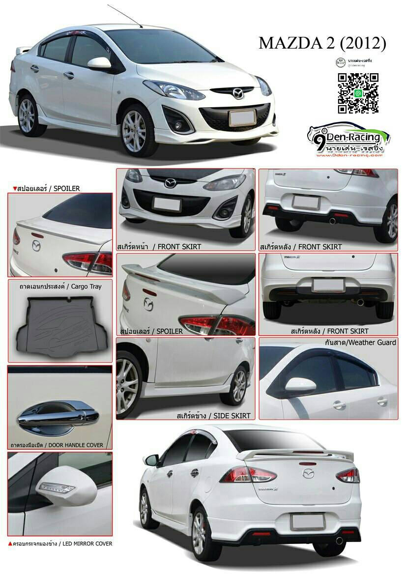 หยิบลงตะกร้า | 9DEN-RBSชุดรอบคัน 5 ชิ้น สปอยเลอร์แนบไม่มีไฟ VS MAZDA 2 SEDAN 4D 2009-2014