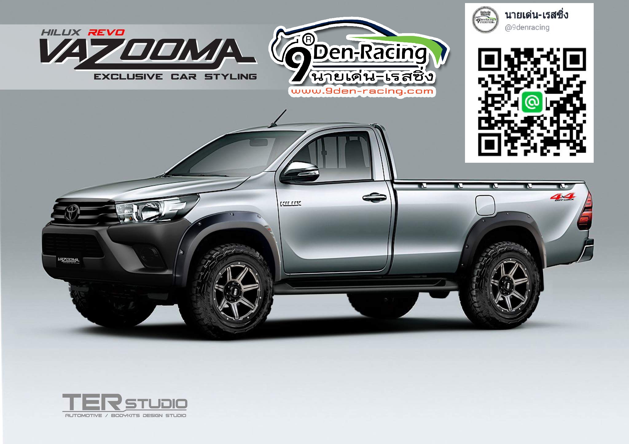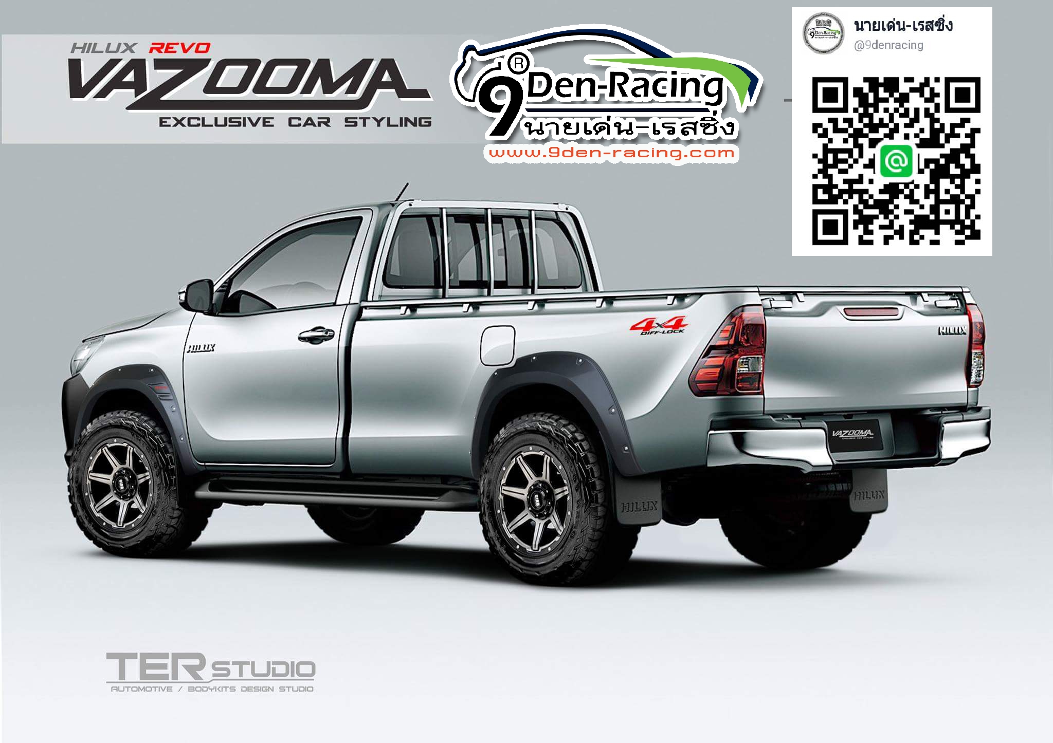 หยิบลงตะกร้า | 9DEN-VAZOOMA สเกิร์ตหน้ามีไฟเดย์ไลท์+สเกิร์ตหลัง+โป่งล้อ รวม 6 ชิ้น VS TOYOTA REVO 2015-ON [เทห์ไม่รอใคร]