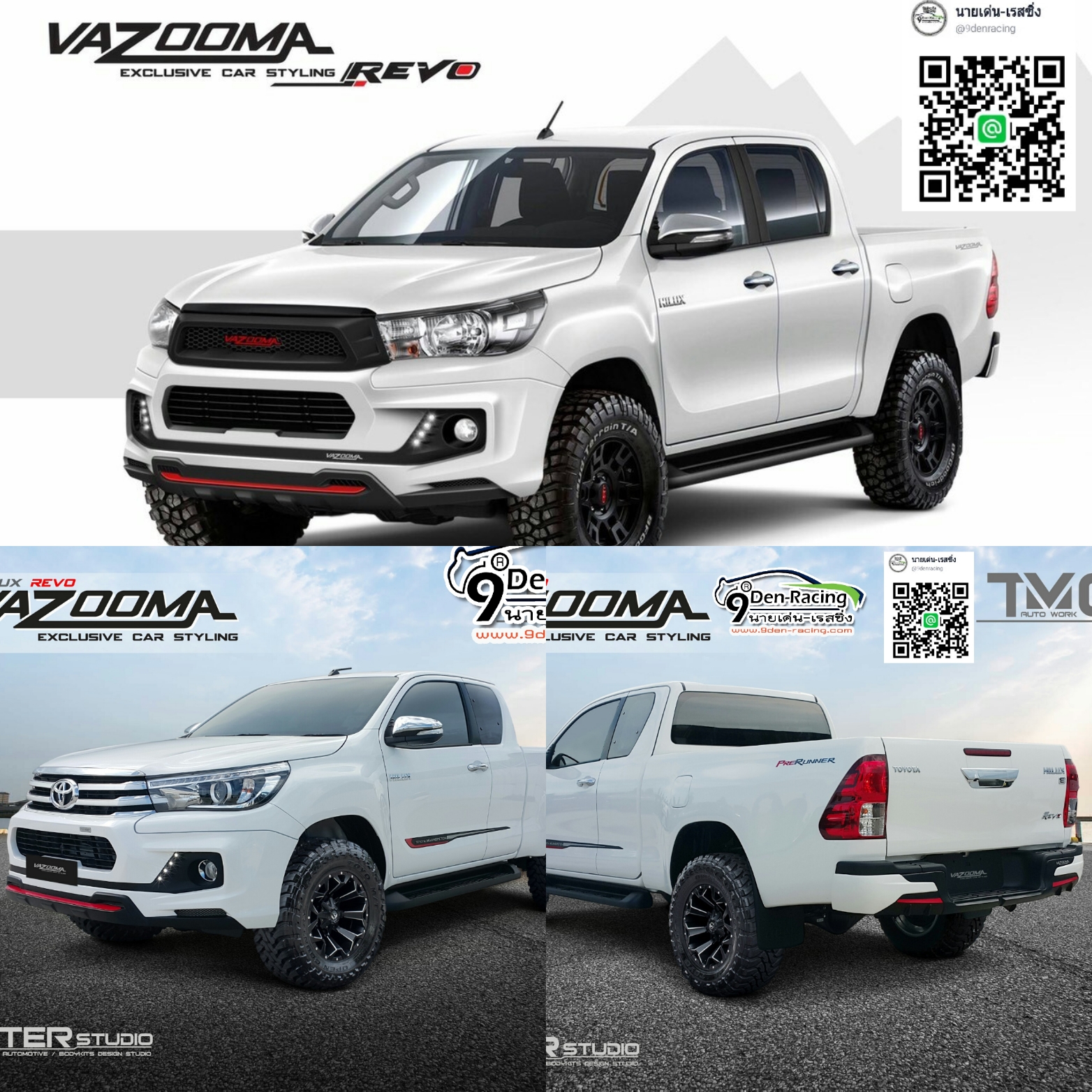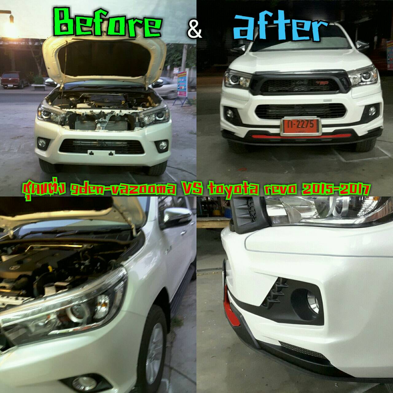 | 9DEN-VAZOOMA สเกิร์ตหน้าไม่มีไฟเดย์ไลท์+สเกิร์ตหลัง+โป่งล้อ+กระจังหน้า รวม 7 ชิ้น VS TOYOTA REVO 2015-ON [แซงทุกความแรงบนท้องถนน]