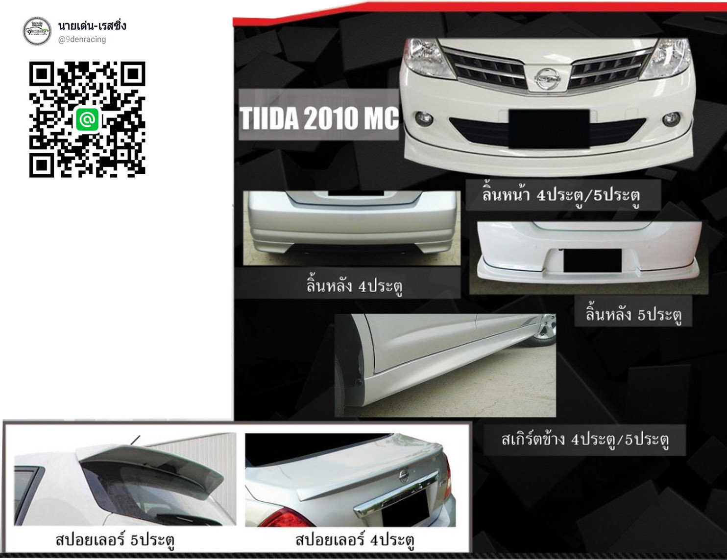 หยิบลงตะกร้า | 9Den&K-ทรงห้างชุดรอบคัน+สปอยเลอร์5ชิ้น VS Nissan Tiida(Mc)4D'10-12 [มาตราฐานความหล่อสวยไม่เป็นรองรองใคร]