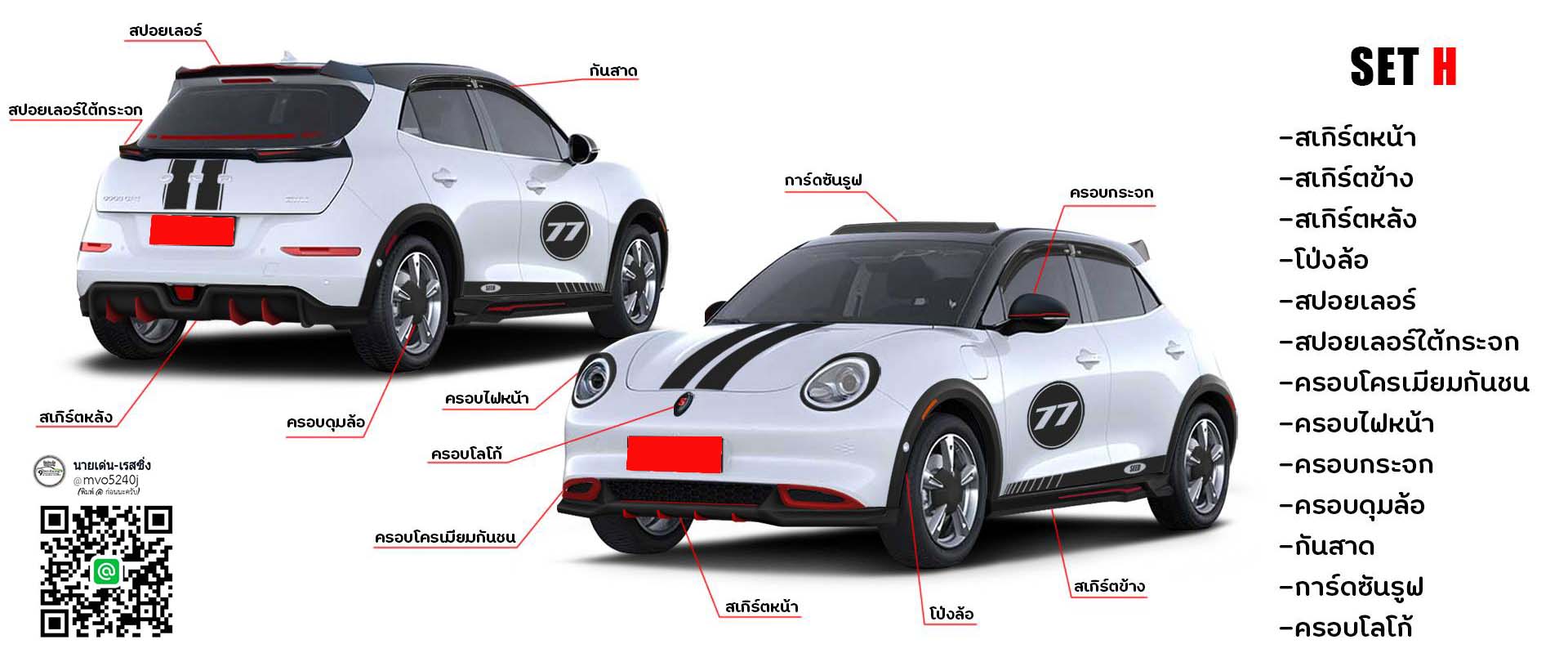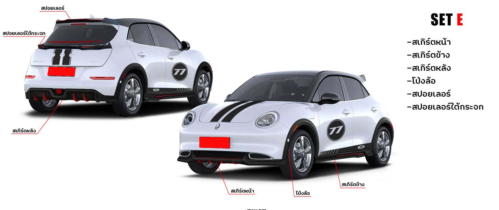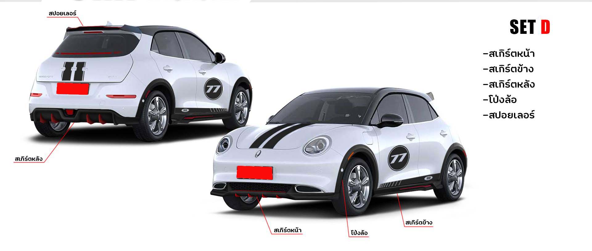 | ชุดG 20 ชิ้น(สเกิร์ตหน้า+ข้าง+หลัง+โปร่งล้อ+สปอยเลอร์บน+คาดเอว+โคเมี่ยมกันชน+ครอบไฟหน้า+ครอบโลโก้+ครอบกระจก+ครอบดุมล้อ) SEED SPORT VS ORA Good Cat'21-ON [เจ้าแมวซ๋าบนท้องถนนเมืองไทย]