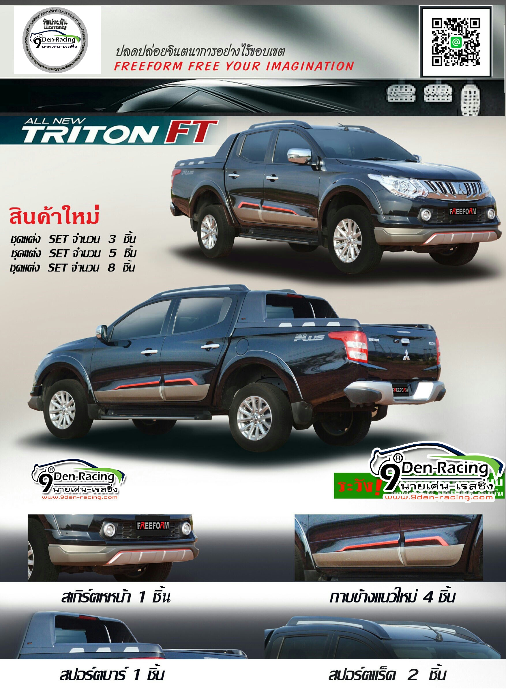 หยิบลงตะกร้า | 9DEN-FT สเกิร์ตหน้า+กาบข้าง+โรบาร์สีกลางเทาดำ/หรือทำสีตามตัวรถ+แร็คหลัง VS MITSUBISHI TRITON 2015-ON SET 8 ชิ้น